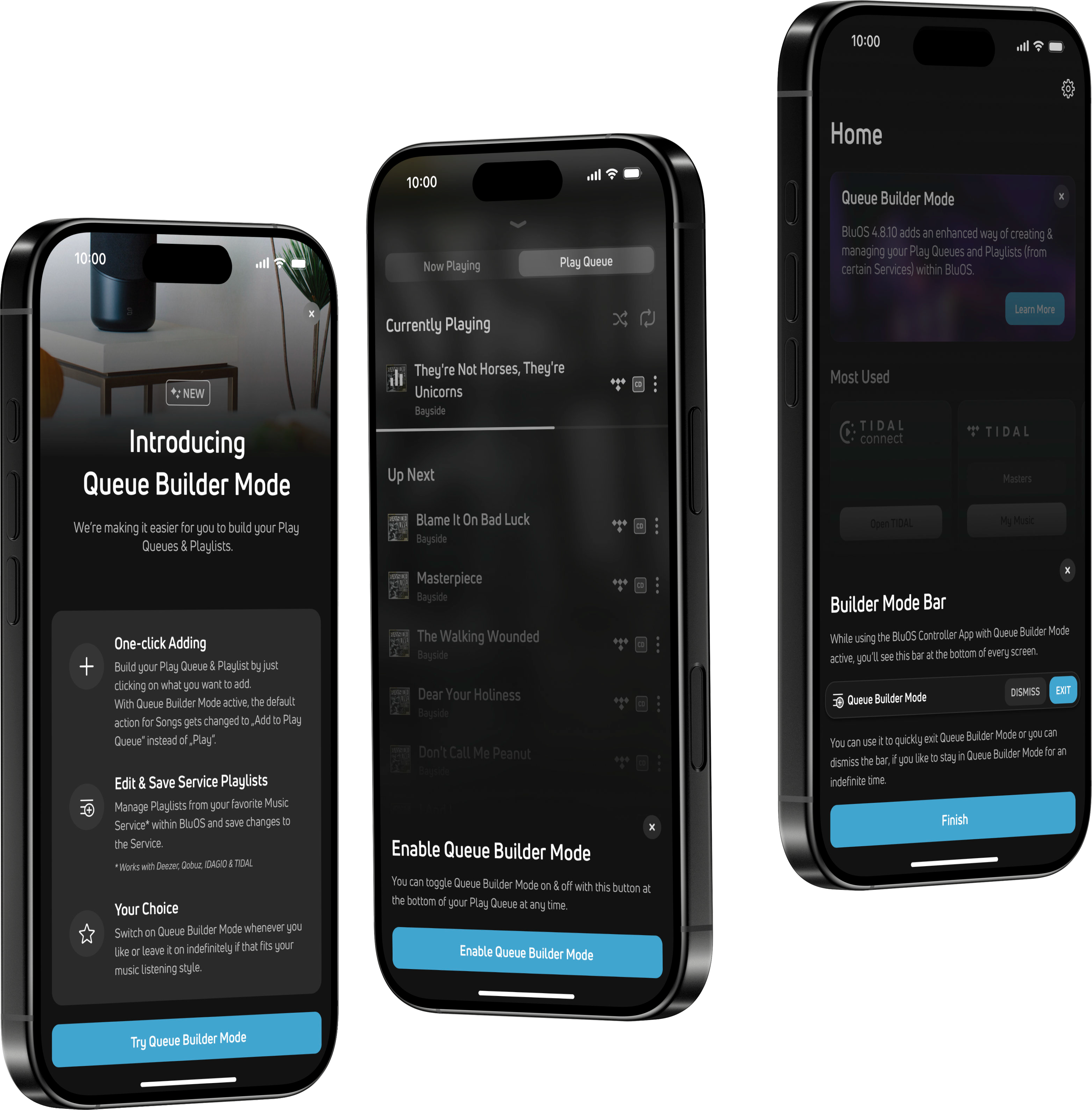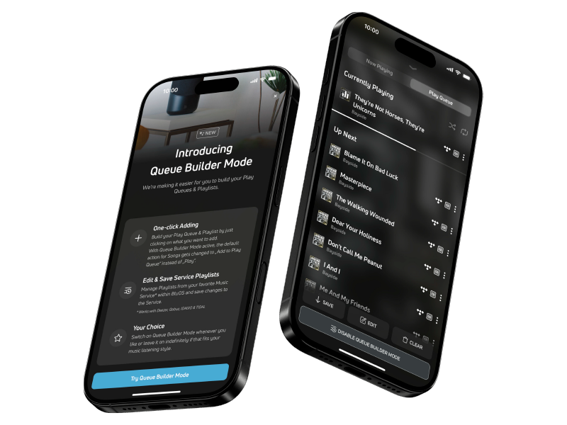 “Queue Builder Mode ha sido diseñado para dar a los oyentes más flexibilidad y control”, explica Andrew Haines, Product Manager de BluOS. “Ayuda a crear colecciones que se adaptan al estado de ánimo, al sistema de audio y a la forma en que las personas se mueven por su hogar, haciendo más sencillo dar forma a la banda sonora perfecta para cada habitación”.
