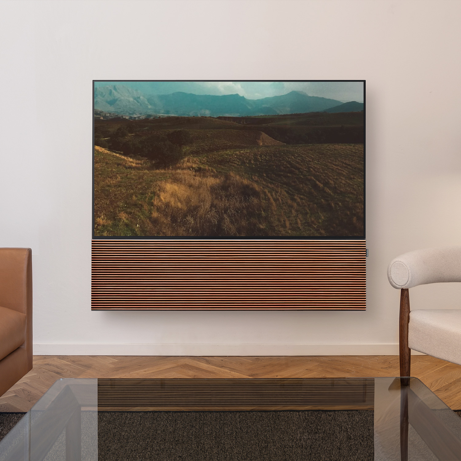 Visualmente, el altavoz Canvas HiFi es muy reconocible al ser único en su clase. Se trata de uno de los pocos altavoces capaces de encajar con tu decoración, sea cual sea. Disponible en 13 acabados que van desde elegantes tejidos a auténtica madera, sus rejillas tienen un tamaño que integra visualmente el altavoz con televisores de 55”, 65”, 75” y 77” gracias a su soporte universal para televisor incluido. Una vez unidos, el altavoz Canvas HiFi permite colocarlos de pie o en pared.