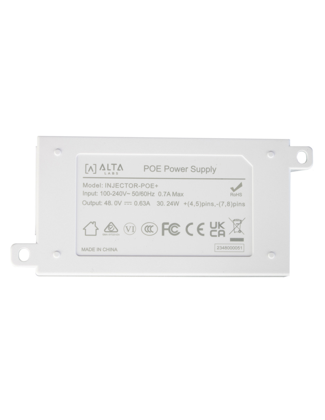 • Compatible con estándar 802.3at PoE+, entrega 48 V y hasta 0,63 A en la salida.