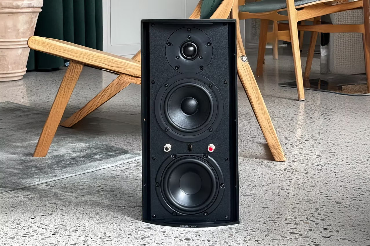 Su diseño permite colocarlo en la intersección entre dos paredes, logrando optimización de espacio y de expansión sonora. Una solución actual y práctica que facilita la instalación del equipo de sonido en la habitación en la que se quiere disfrutar.