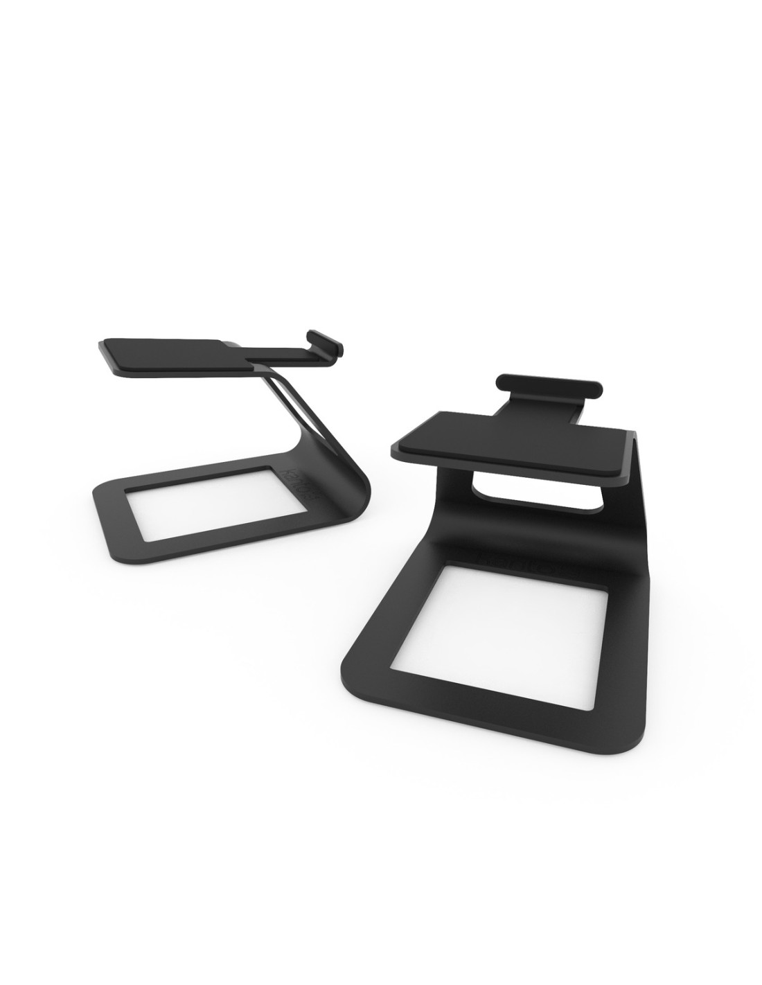 Su plataforma inclinada tipo cantilever está diseñada para “flotar” sobre la base del escritorio, minimizando vibraciones y resonancias. El uso de silicona (1.5 mm) en la parte superior e inferior aporta agarre para los altavoces y evita deslizamientos, además de amortiguar movimientos no deseados cuando el volumen es alto.