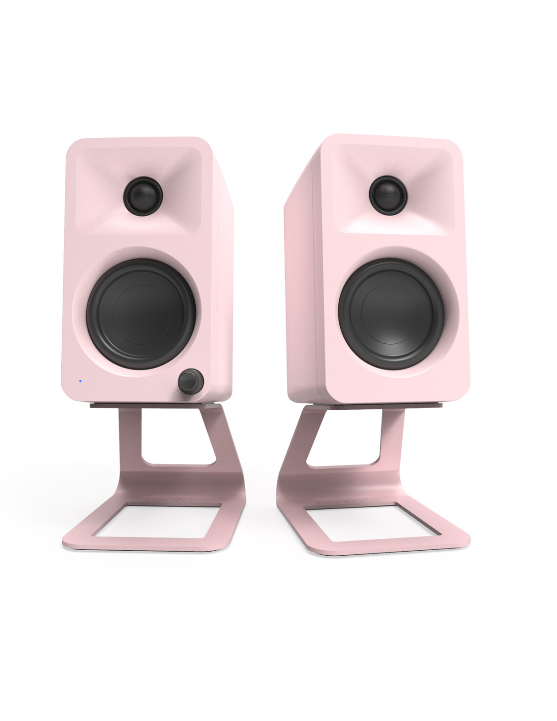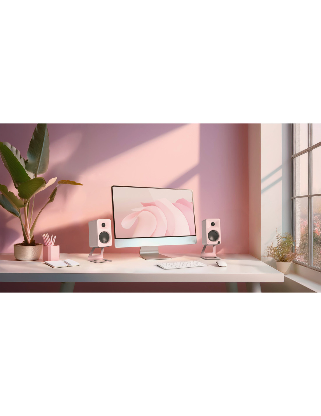 Los SE2 elevan tus altavoces ~3.8 pulgadas sobre la superficie del escritorio, lo que ayuda a alinear los drivers con el nivel de escucha. Esto mejora la respuesta on-axis y evita que superficies cercanas generen reflejos que ensucien el sonido.