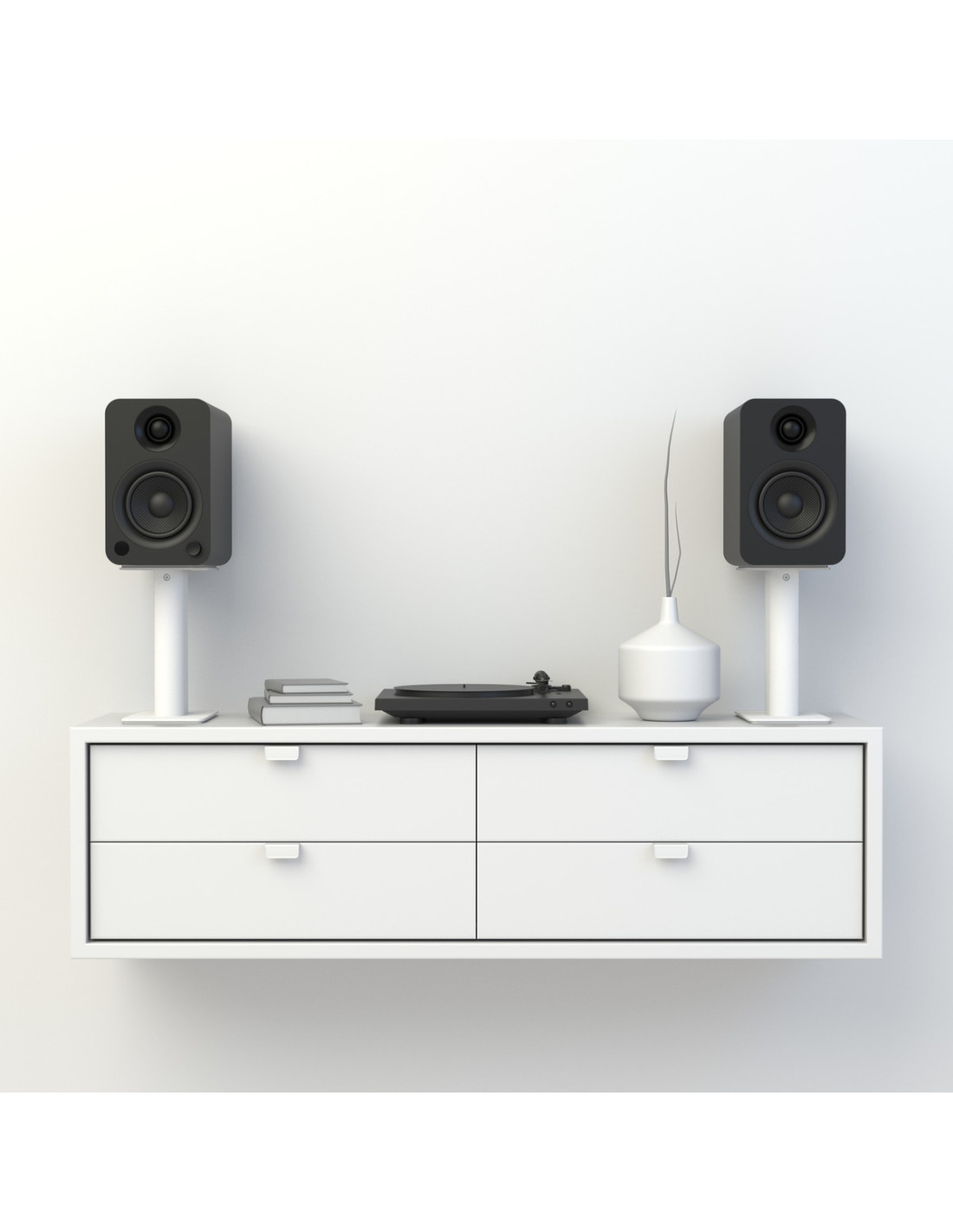Los altavoces YU presentan un diseño compacto que facilita su integración en espacios reducidos, como escritorios o estanterías. La carcasa está construida en MDF de grado acústico, un material que minimiza las vibraciones no deseadas y mejora la calidad del sonido.