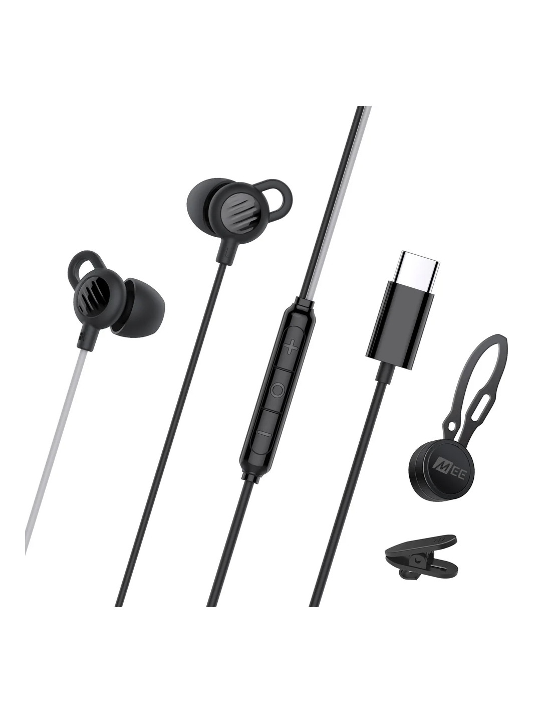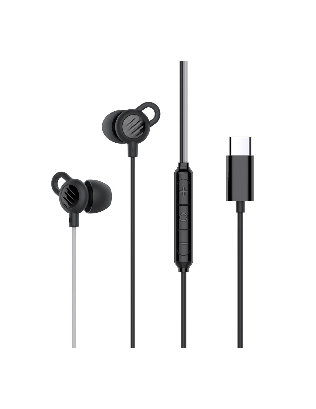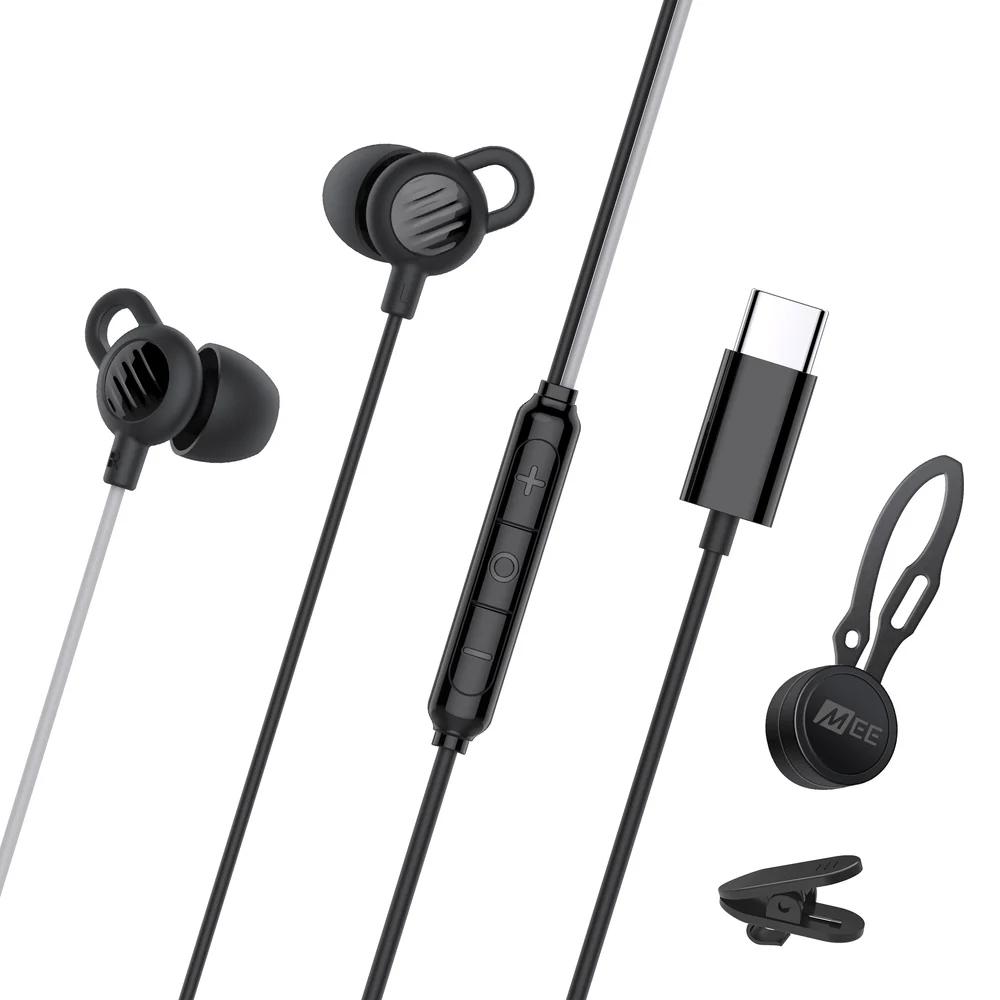 Auriculares para dormir con cable USB-C, micrófono integrado y controles de volumen.